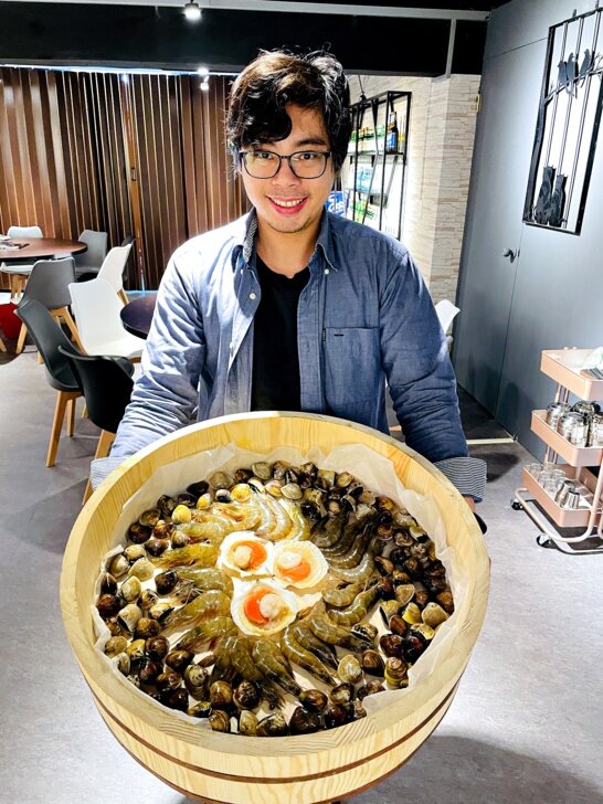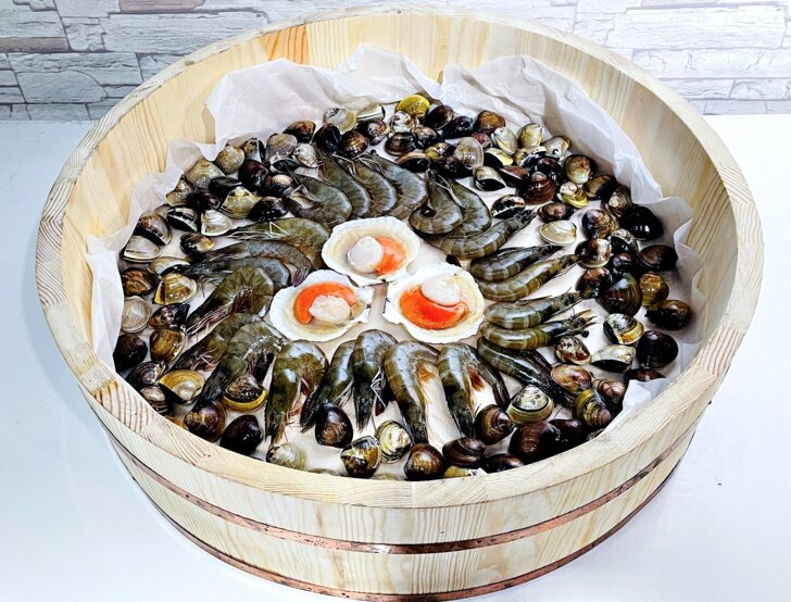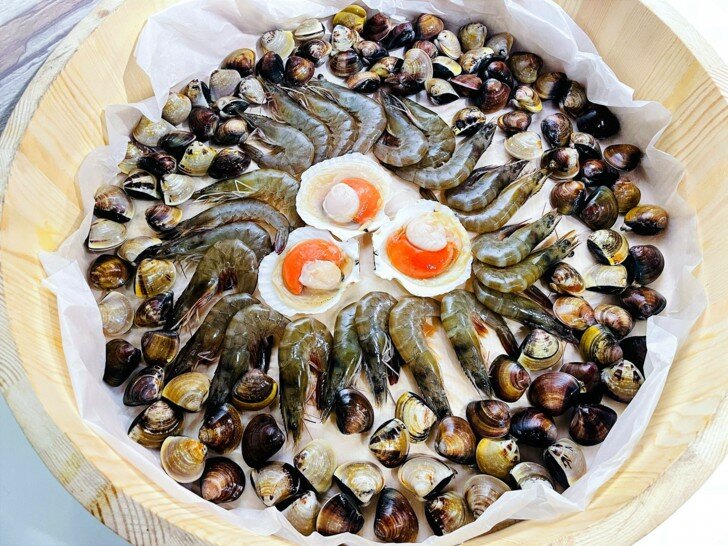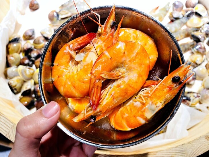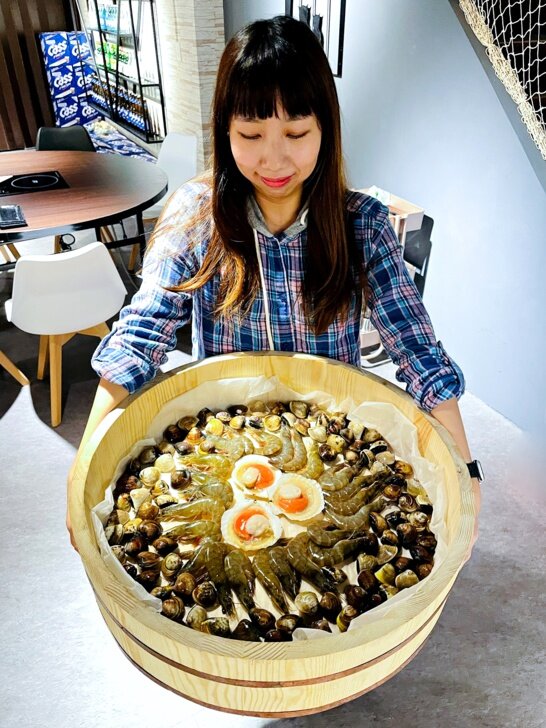 不仔細一看以為現場怎麼會有洗澡盆?!(笑)不是啦!是澎湃的海鮮盆(蛤蠣白蝦扇貝)