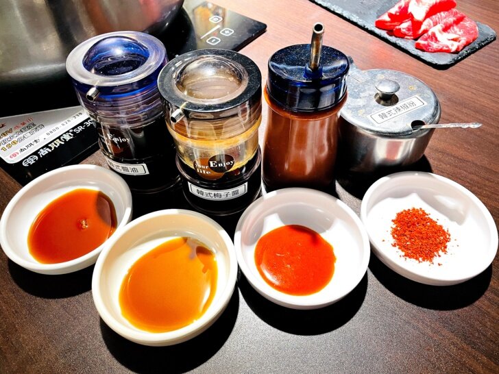 現場提供 韓式醬油韓式梅子醬韓式辣醬韓式辣椒粉和不同食材搭配著吃別有一番風味!