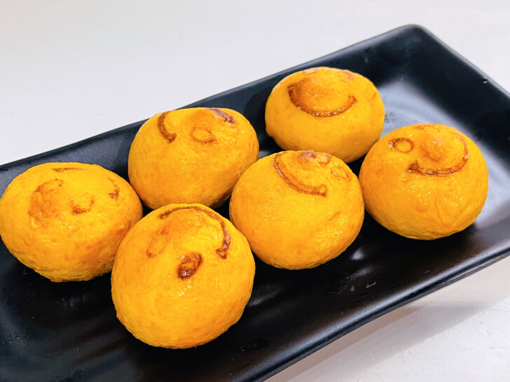 印有微笑圖樣的是流沙包內餡吃起來微鹹又微甜 ~