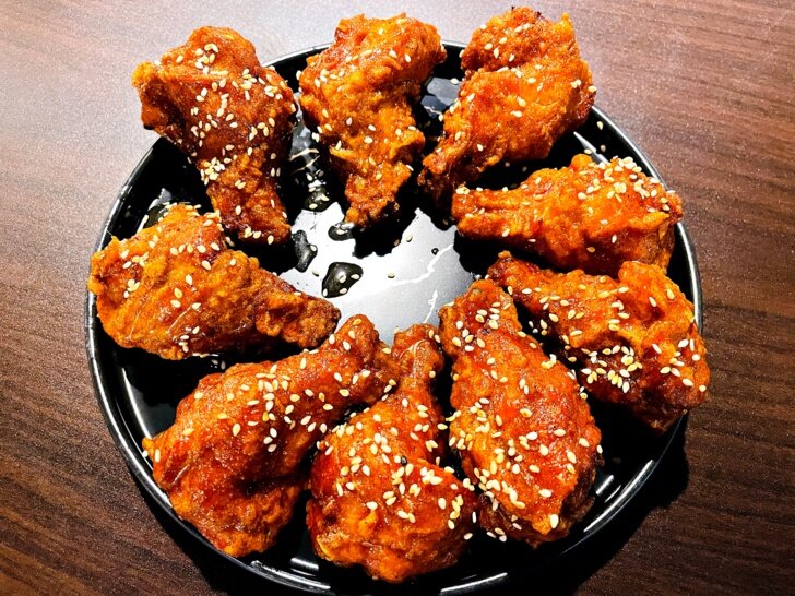 韓式炸雞辣味/蜂蜜口味各半撒上白芝麻增添迷人香氣