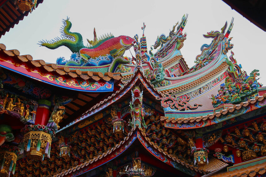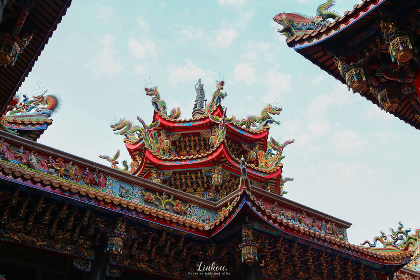 來到旅途的重點觀音寺!觀音寺是林口一帶香火非常鼎盛的廟宇,來此朝聖的信徒非常多,廟宇也是一間接著一間擴建整修,空間非常廣闊,容納不少遊客。建築物與天花板上的精美雕刻,讓我們看得目不轉睛,金碧輝煌的外觀看起來就超級無敵氣派阿!