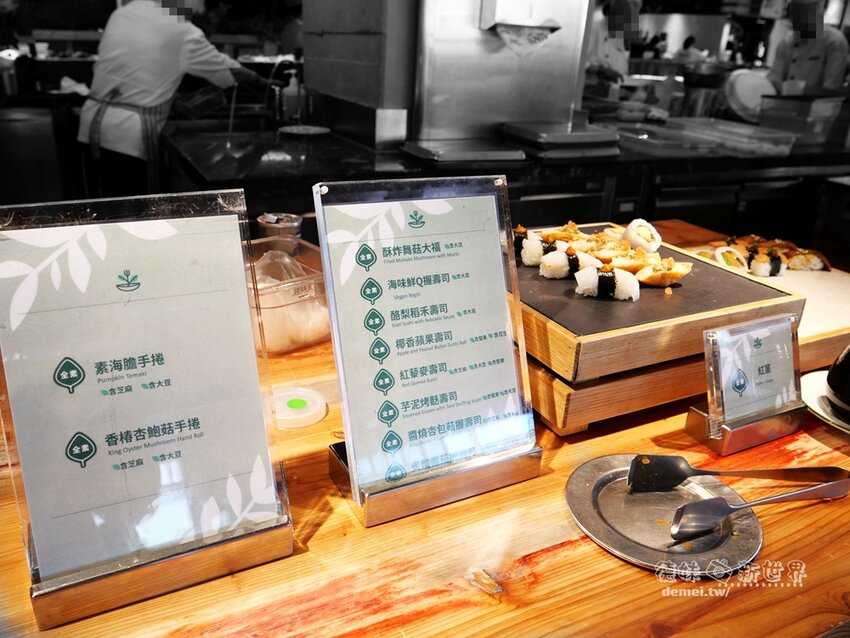 酥炸舞菇大福、海味鮮Q握壽司、酪梨稻禾壽司、椰香蘋果壽司,