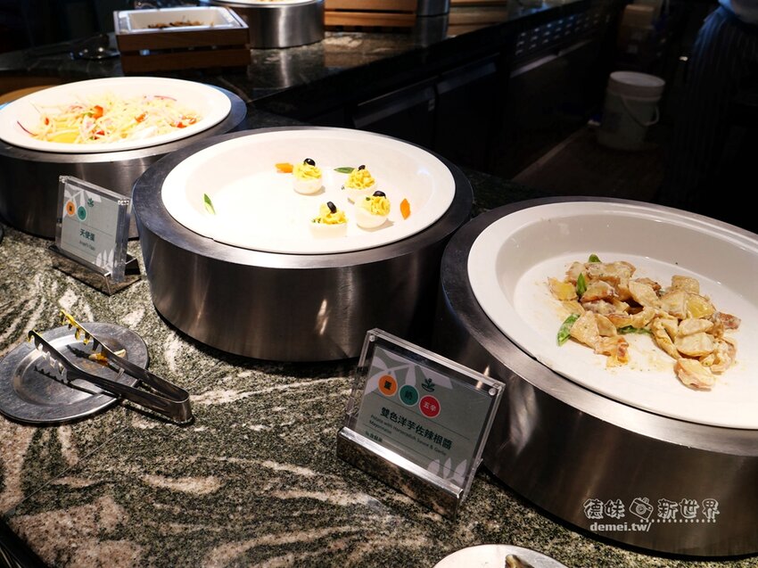 溫沙拉選擇性也不少,雙色洋芋佐辣根醬、天使蛋、泰式青木瓜沙拉。
