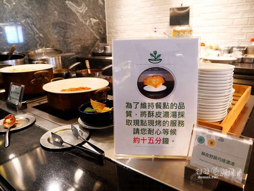 現點現烤的酥皮野蔬巧達濃湯,可以先預約,大概十五分鐘後再來取。