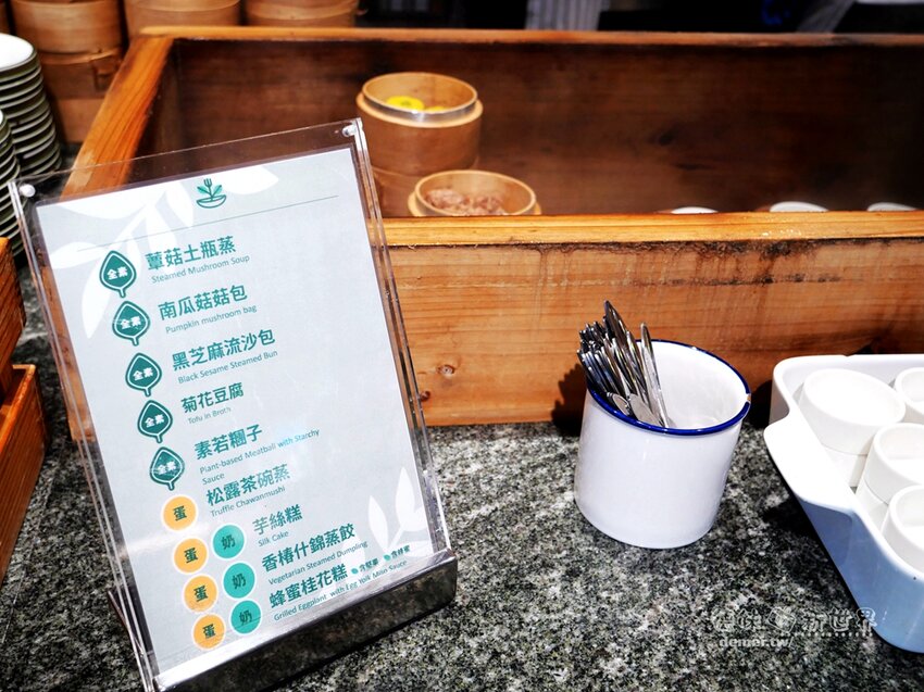 桌面每一餐點皆有小立牌,貼心標明:全素、含蛋(奶)、五辛、堅果…等,