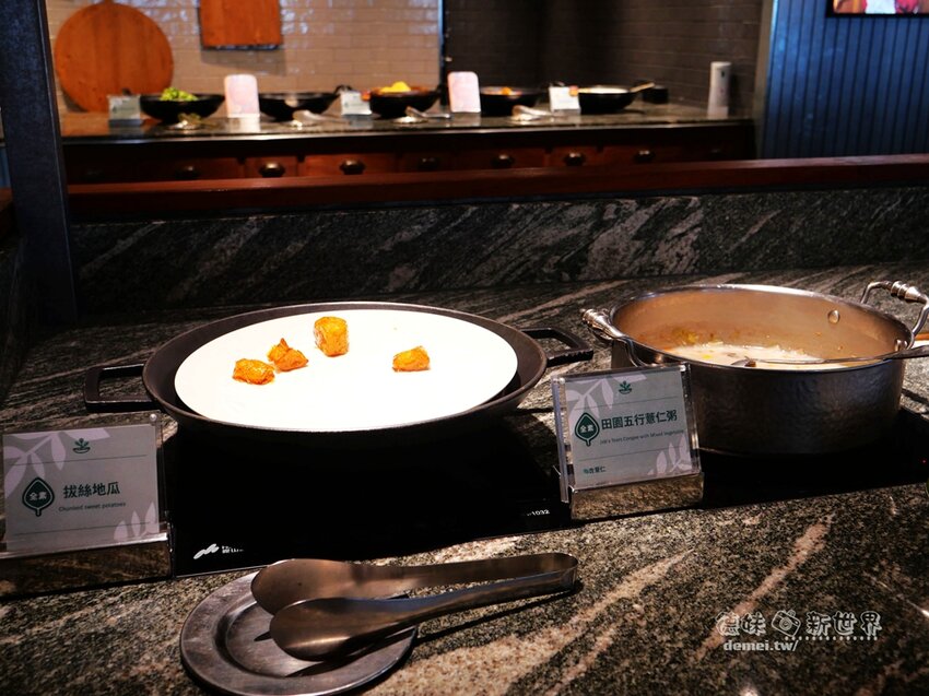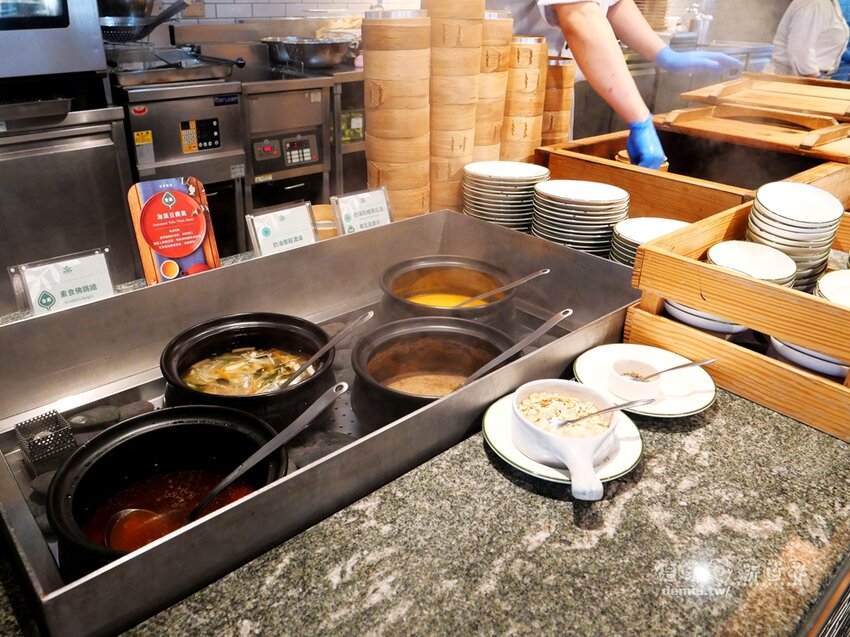 素食佛跳牆、奶油蕈菇濃湯、奶油榖纖南瓜湯、養生燕麥片。