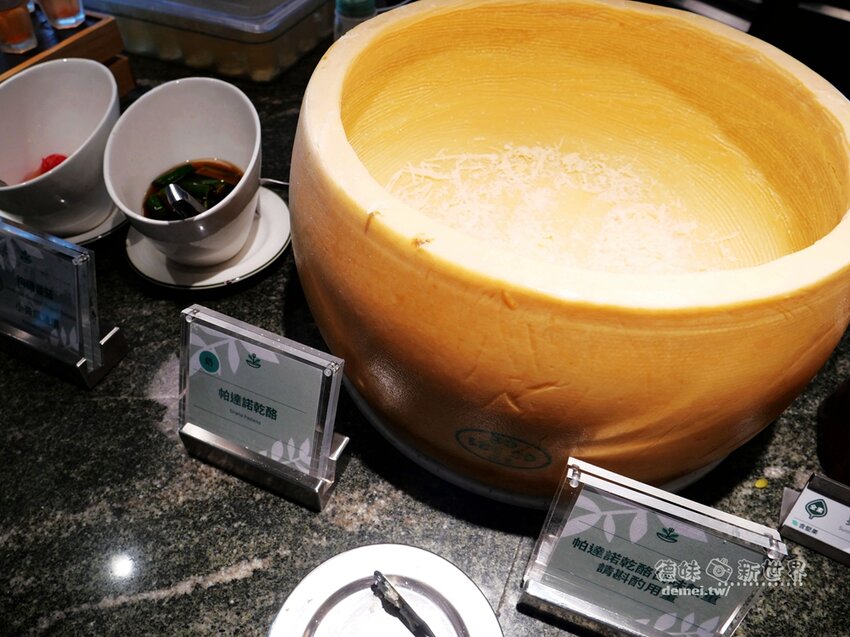 濃郁的現刨帕達諾乾酪,梅釀番茄、小黃瓜淺漬與爽口的生菜沙拉也很搭。