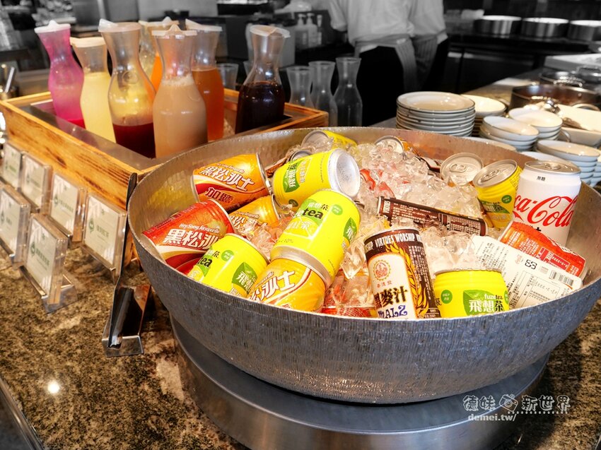 埋在冰塊裡的知名罐裝飲料,黑麥汁、加鹽沙士、無糖可樂、檸檬紅茶…等。