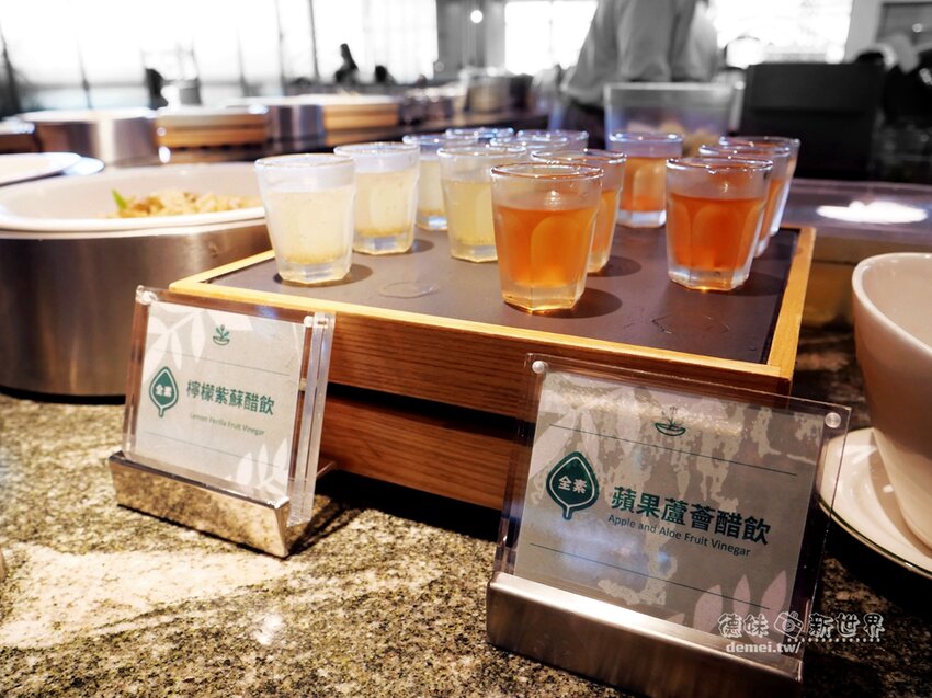 解膩助消化的蘋果蘆薈醋飲、檸檬紫蘇醋飲。