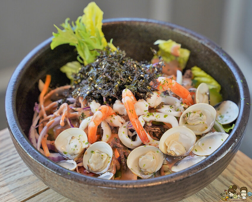 巨大盆的綜合海鮮沙拉,讓愛吃菜菜的女生、家人都可以很滿足