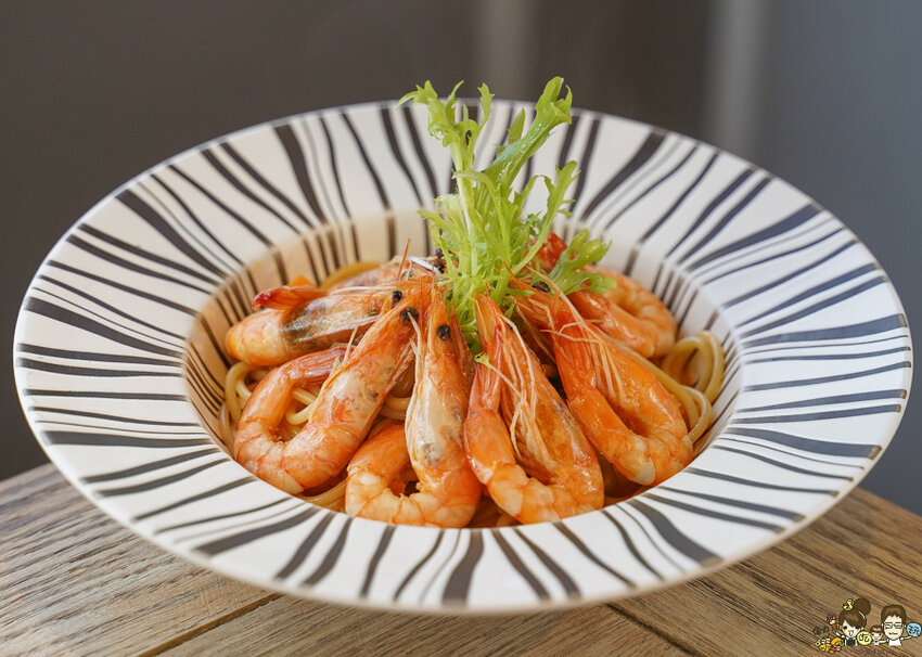一端上來滿滿蝦子覆蓋於義大利麵上,蝦蝦控最愛的海味蝦醬鮮蝦