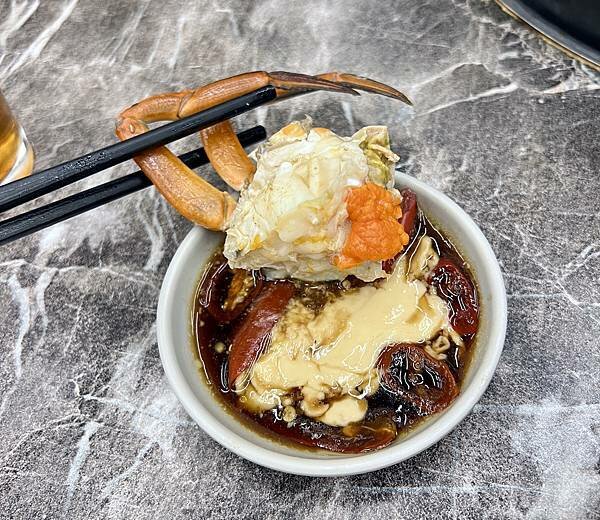 以紅蟳結合薑母鴨,替湯頭增添鮮甜度,