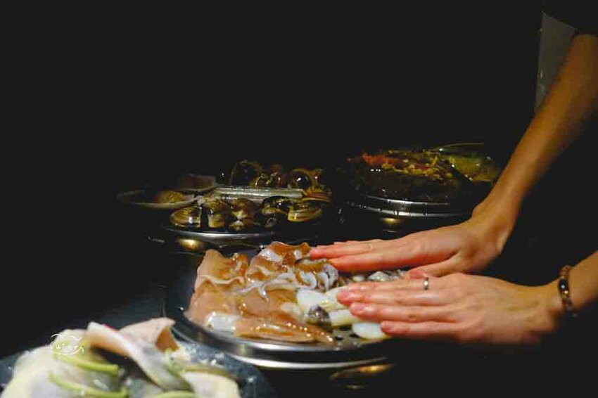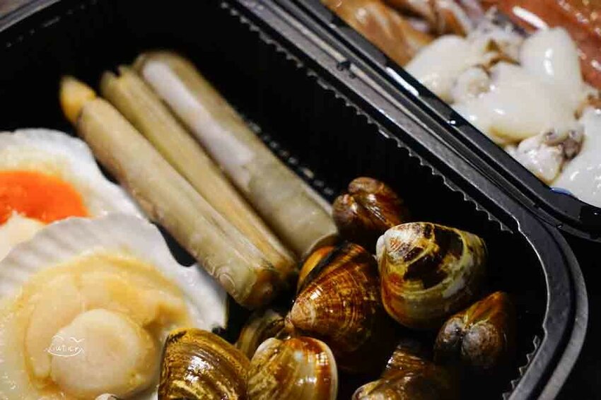 看看那一隻隻新鮮的大蝦、蛤蜊、北寄貝、小花枝、中卷、竹蛤….,品項以當天新鮮進貨品項為主,讓顧客品嚐最新鮮海未,最鮮美的食材原味!