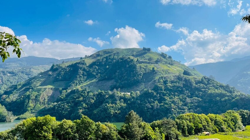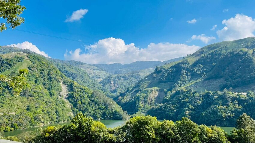 在沖積扇這一頭拍過去中橫公路的美景~山景超美搭配藍天白雲也是絕美的一景!