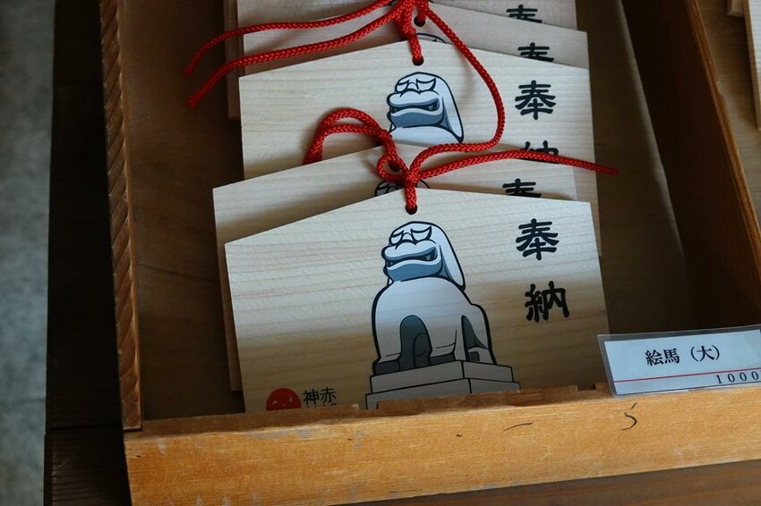 最讓人受不了得,應該還是這個吧!充滿著滿滿的狛犬風格的『絵馬』,整個讓我在社務所前面笑到一個倒抽,差點畫面對不到焦距。