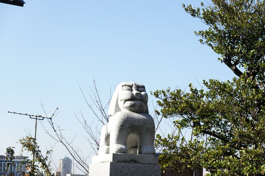 再稍微往內走,就會看到正殿聳立在眼前了!但是,那對狛犬卻一直吸引住我的目光,就是每個神社前都會有的一對狛犬,根據QR code顯示,這還不是為了吸引民眾而特別訂製的,而是流傳自江戶時代的古蹟『加賀白山犬』,這個造型的狛犬曾在江戶時代大流行,不論是身體的姿態或是表情都充滿著肌肉的張力和緊張感,簡直就和埃及的獅身人面像一樣雄赳赳氣昂昂;告示板是這樣寫啦!但是狛犬,我卻覺得這狛犬好可愛啊!!!!!