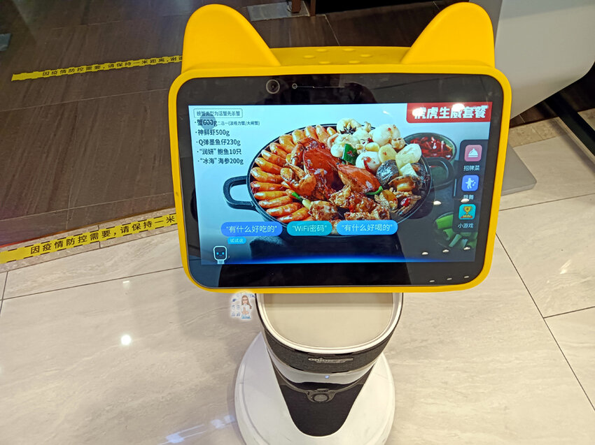 店門口有台機器人,如果遇到排隊時無聊可以跟它聊天玩玩。