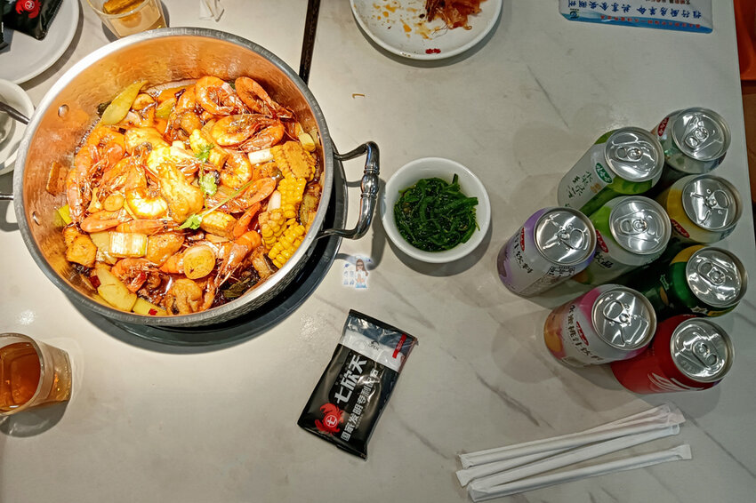 本來我是想來試試這裡的招牌特色菜波格力蟹,但因為發現他們家的抖音套餐最近在做活動,於是就改吃《初識蝦參鍋》¥198。