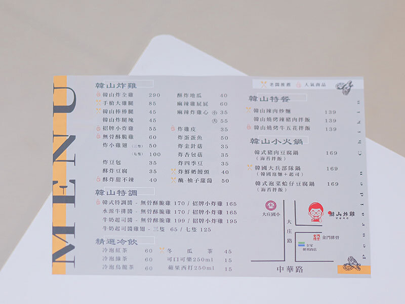 韓山炸雞大庄店 菜單