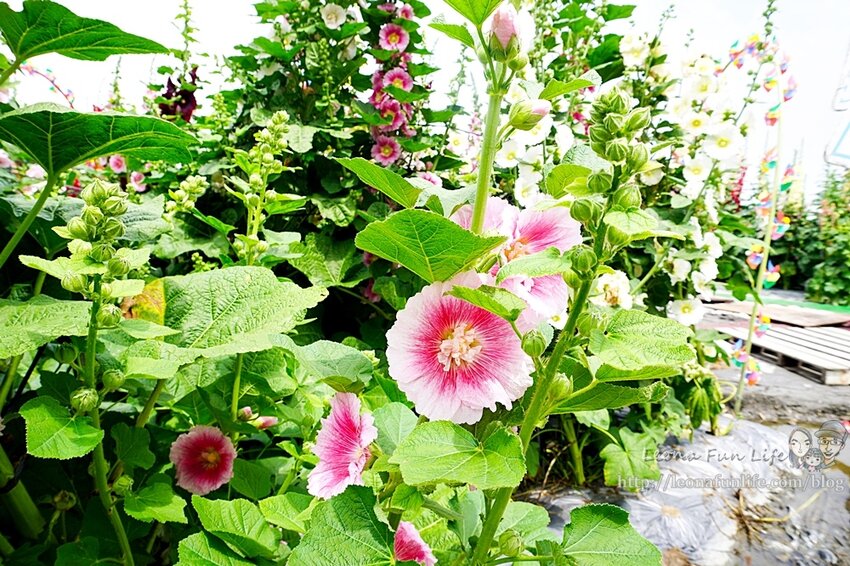 園區內除了花朵盛開的蜀葵花外,
