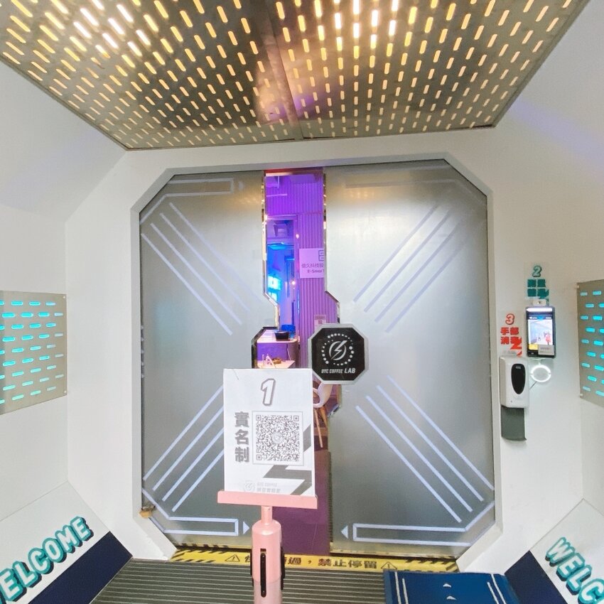 只要量好體溫, 太空艙的入口就開始發光,隨著艙門打開就好像進入到另一個時空裡, 好新穎吶!