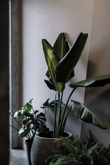 兩盆在不同的位置單獨存在的植栽,