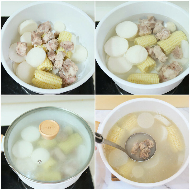 接著,就用24CM雙耳湯鍋來個暖心湯品-蘿蔔玉米排骨湯,