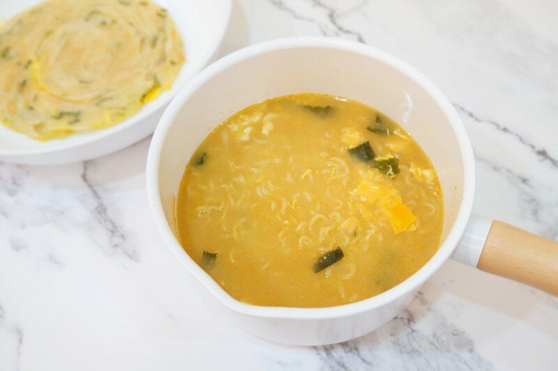 接下來就用18CM單柄湯鍋來煮我最愛的韓式拉麵,