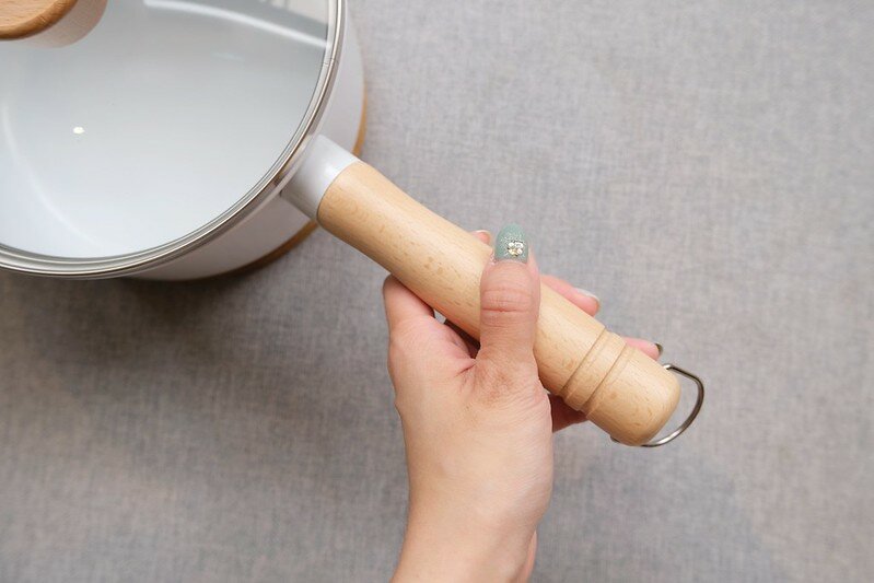 原木手把+透明防溢鍋蓋+加厚陶瓷強化不沾塗層,