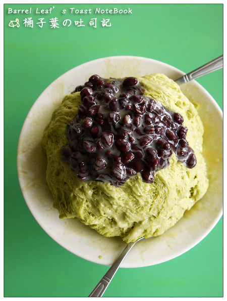 這一盤抹茶紅豆雪花的高度也沒有在客氣的高,而且上頭的紅豆比花豆更吸引葉子~!