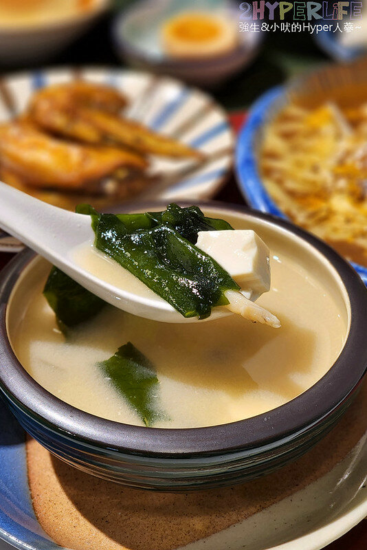 味噌湯裡頭也是真材實料,有洋蔥、鴻禧菇、嫩豆腐和海帶芽等等!