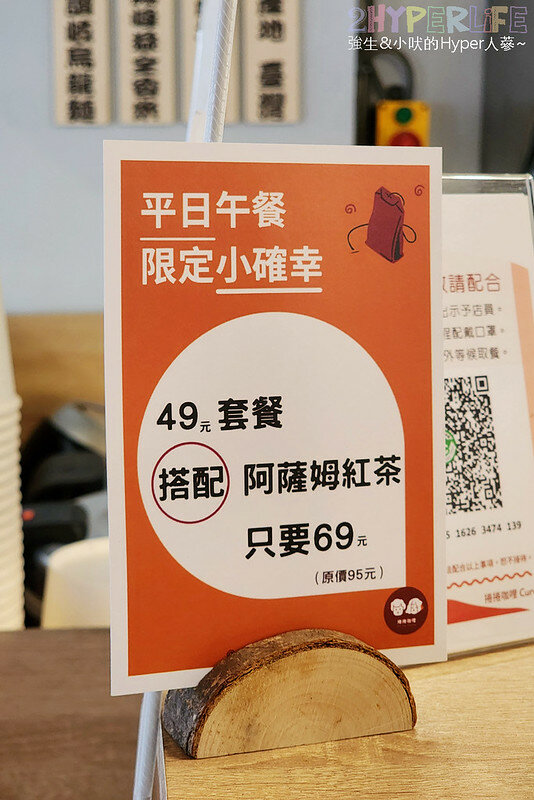 我們這天剛好比較晚來用餐,沒想到接近快中午二點店內還是坐滿了人!如果不想等待內用的話也有提供外帶服務,而且主食外帶都可以折價20元呦,建議提前預訂才不用到了現場還要久候,另外提前一天預訂滿300元有贈送阿薩姆紅茶一杯(可累計贈送)