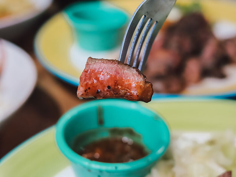 老樣子,玩完食物拍完照可以請店家幫我們切開比較好分食,有帶小朋友來老闆會幫你處理的熟度與嫩度剛剛好!再上桌的牛肉肉香味更是滿足啊。