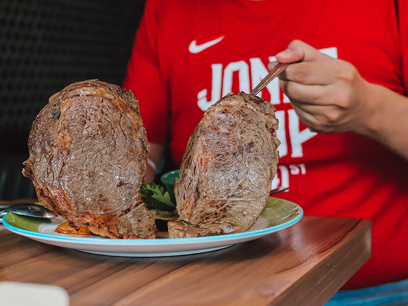 肋眼的最佳食用熟度當然是5分熟!若想吃生一點可以在跟店家說;切開焦色外皮露出是櫻色的肉面,光是視覺感就食指大動!而我個人更喜歡肋眼的肉邊,帶點筋膜的微脆口感。
