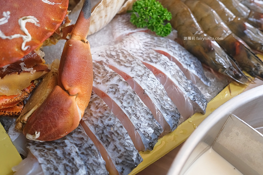 裡面有日本生食級干貝、帶卵大扇貝、九州鮑魚、台灣鱸魚片、野生花蝦、野生海大蝦,還有超級霸王級的麵包蟹,說到這隻蟹那可是完全沒在跟你開玩笑,裡面的蛋多到都快炸出來啦!