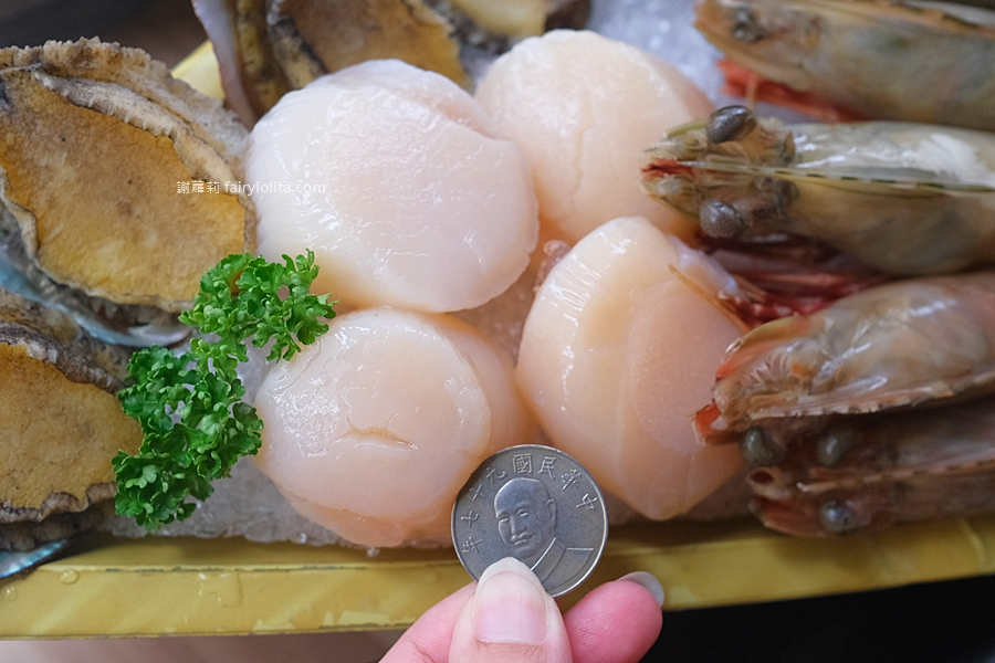 瞧瞧這干貝,拿起10硬幣一比,是不是也是碩大到不行,根本就是超肥美的嘛!這頓就算要我吃到痛風我也願意啦!XD
