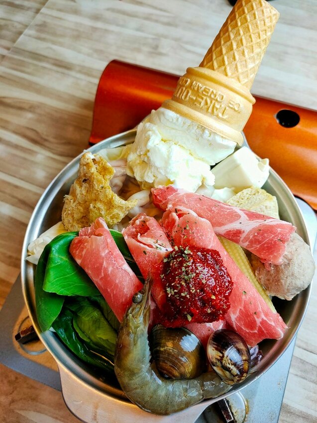 除了冰淇淋拉麵,現在也把冰淇淋加到小火鍋裡面去了