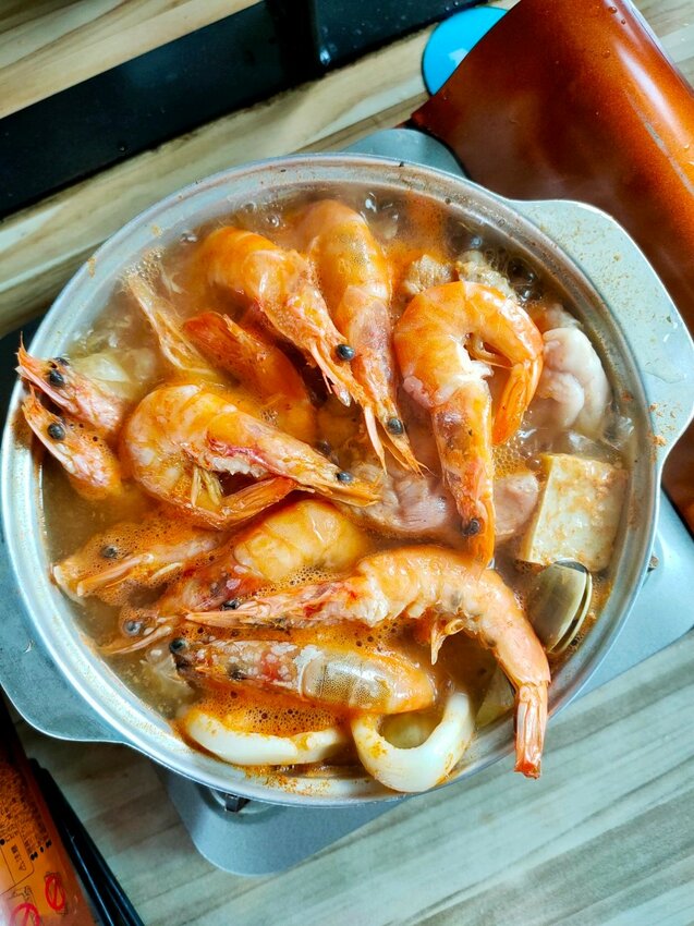 點了基本的海陸鍋之後再加點十隻蝦蝦