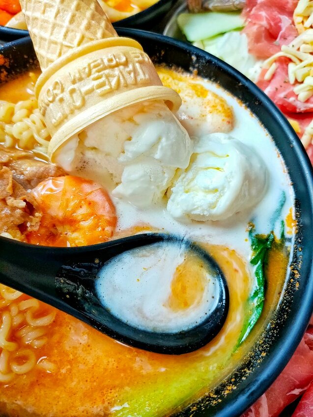 冰淇淋拉麵可能吃到後面,湯頭就比較快冷掉