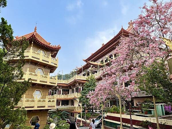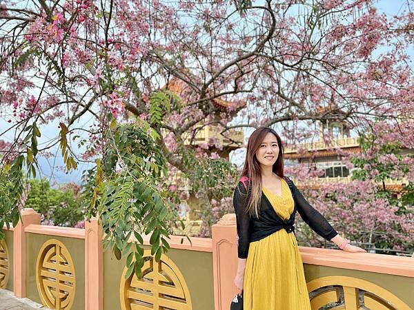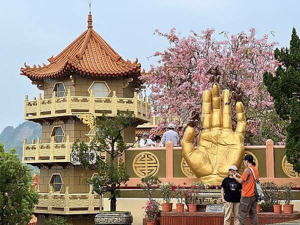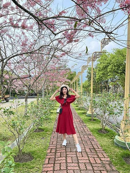 從停車場漫步至寶光塔,滿滿的粉色花海映入眼簾,