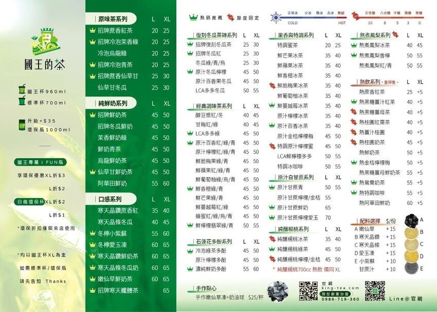 台中飲料店推薦-國王的茶茶飲專賣店 菜單