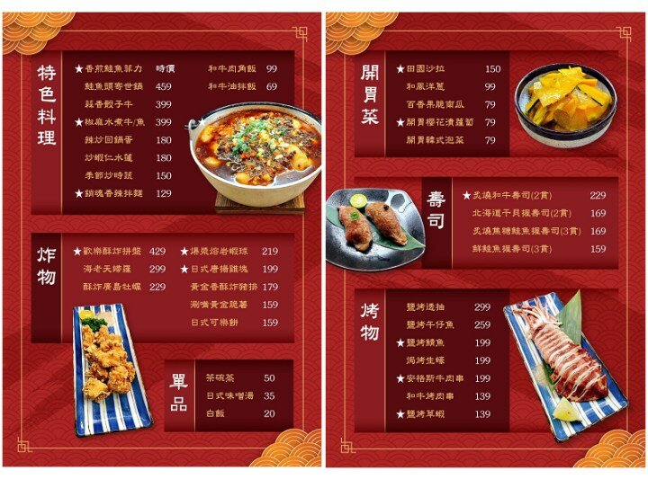 供應的種類橫跨火鍋、海鮮、丼飯、烤炸物、定食、壽司及各式特色料理…….等,