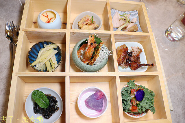 雨來菇,雨來菇不是菇,是一種藍綠藻,又稱地皮菜、草木耳,無法由人工培育,只有在雨季過後才會冒出頭,因此有「情人的眼淚」的浪漫別名、脆皮香酥竹雞、松板豬配香味特殊的天然「威而鋼」蕗蕎、簡單平凡的蒸蛋,內有高蛋白、低脂肪的蜂蛹是它的亮點、羽衣甘藍用墨西哥絣的作法,讓人驚豔。