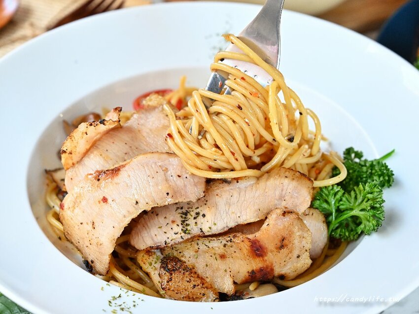 辣味蒜香松阪豬義大利麵 原價229元 嘗鮮價179元
