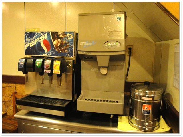 飲料是自助式的汽水機和紅茶,