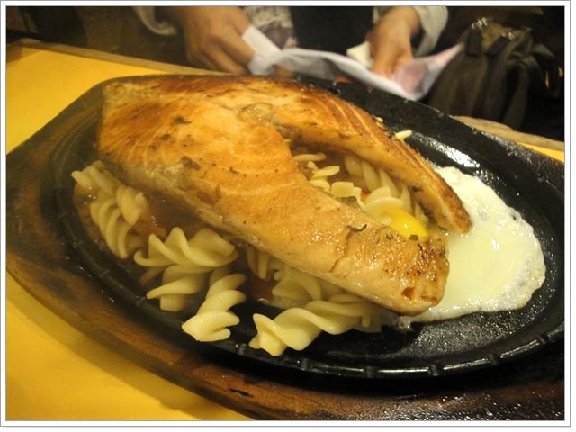 快跟鐵盤一樣大的鮭魚片真的滿吸睛的。