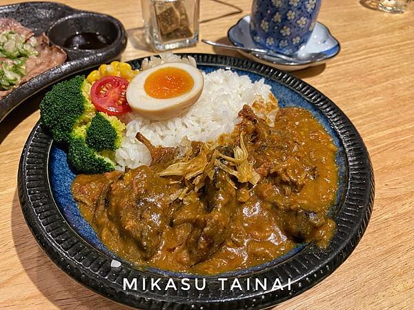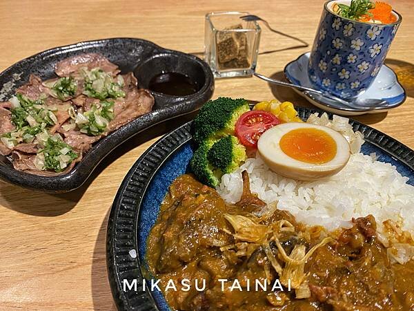 店內餐點主要供應丼飯與咖哩,價格落在NT$199~NT$599,另外還有套餐可以加購,點丼飯的話白飯可以續加,整體用餐下來我覺得咖哩算滿濃厚、偏稠,可以續飯算是還不錯,我們當天點了牛舌咖哩跟牛肋條,那個蒜片牛肋條真的不行,小小一份NT$299,牛肋條整個筋膜都還在,咬起來除了很硬沒別的,烤完之後小小一塊吃起來也很不過癮,比我自己去買回來烤還普通,給大家參考一下,但我覺得吃單說吃咖哩的話,雖然偏貴但是可以的。
