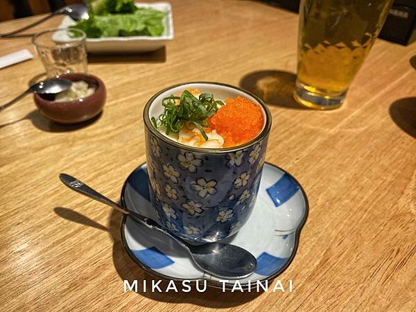 他們的茶碗蒸放置了一隻蝦子、很多~蝦~卵~下面還有一點點海鮮,小小奢華感的茶碗蒸,蒸蛋不會太硬、調味很吃起來很像都是海鮮本先的鹹味,不會很膩口,茶碗蒸本身的口感也很滑順,我自己滿喜歡的。