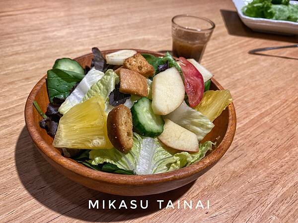因為我不敢吃美乃滋的關係,我們通常都是點和風油醋醬的,我覺得就中規中矩的油醋沙拉啦!蔬果都還滿新鮮的,綜合飲食~