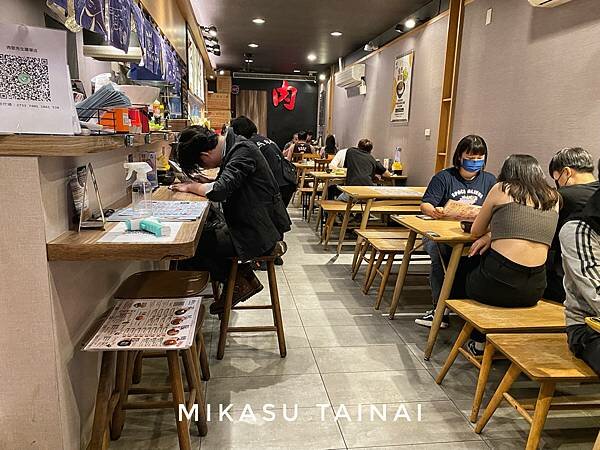 店內走一個日式居酒屋的感覺,木製桌椅與吧檯都有,位置說多不多、說少也不是很少,大概40個位置左右,但位置跟位置之間還滿近的。